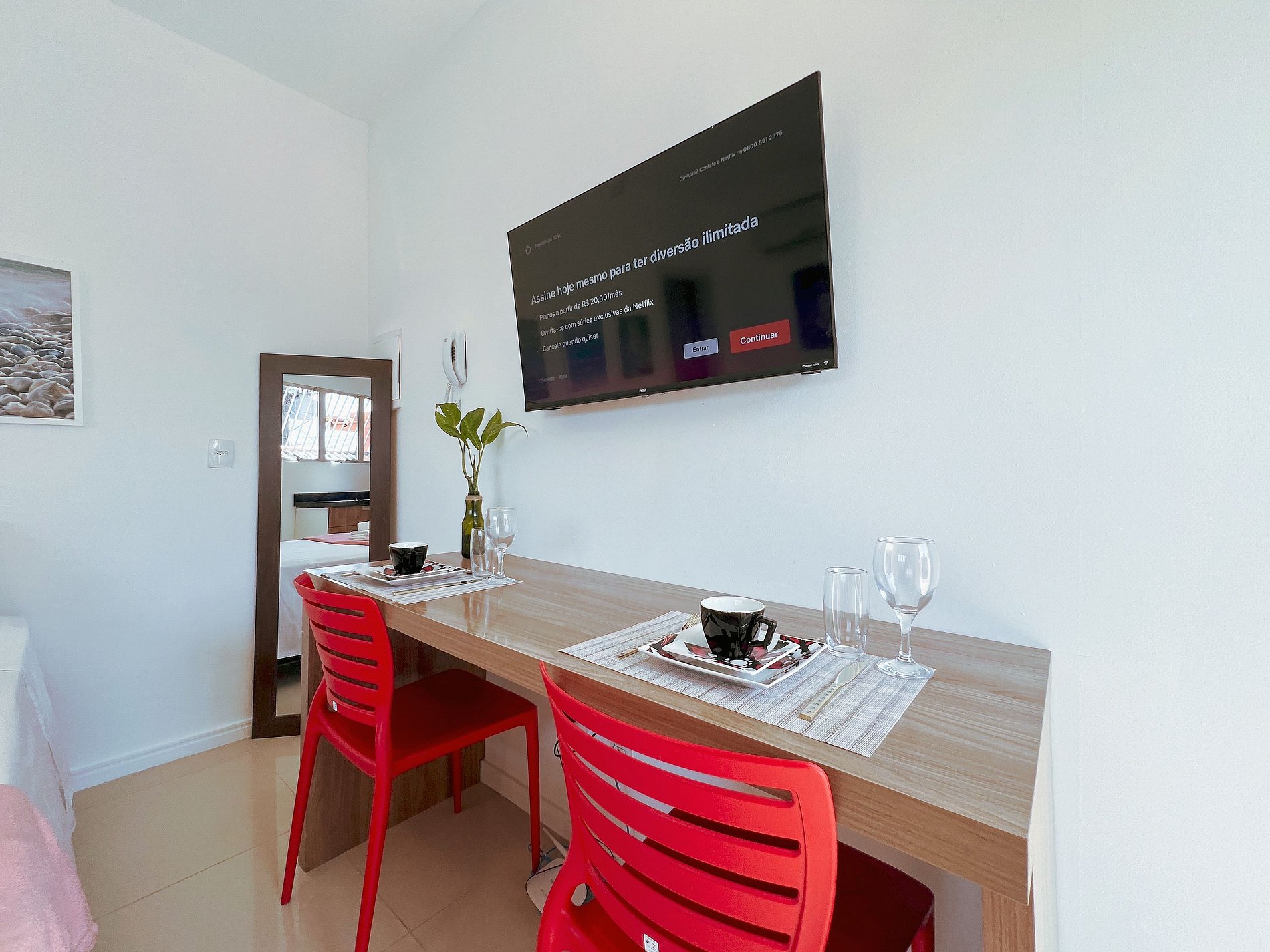Descubra o conforto e a praticidade deste studio moderno, perfeito para quem busca uma estadia tranquila e bem localizada em Florianópolis. Com 25m², decoração aconchegante e uma infraestrutura completa, nosso espaço é ideal para viajantes a trabalho, estudantes ou casais em busca de uma experiência agradável.