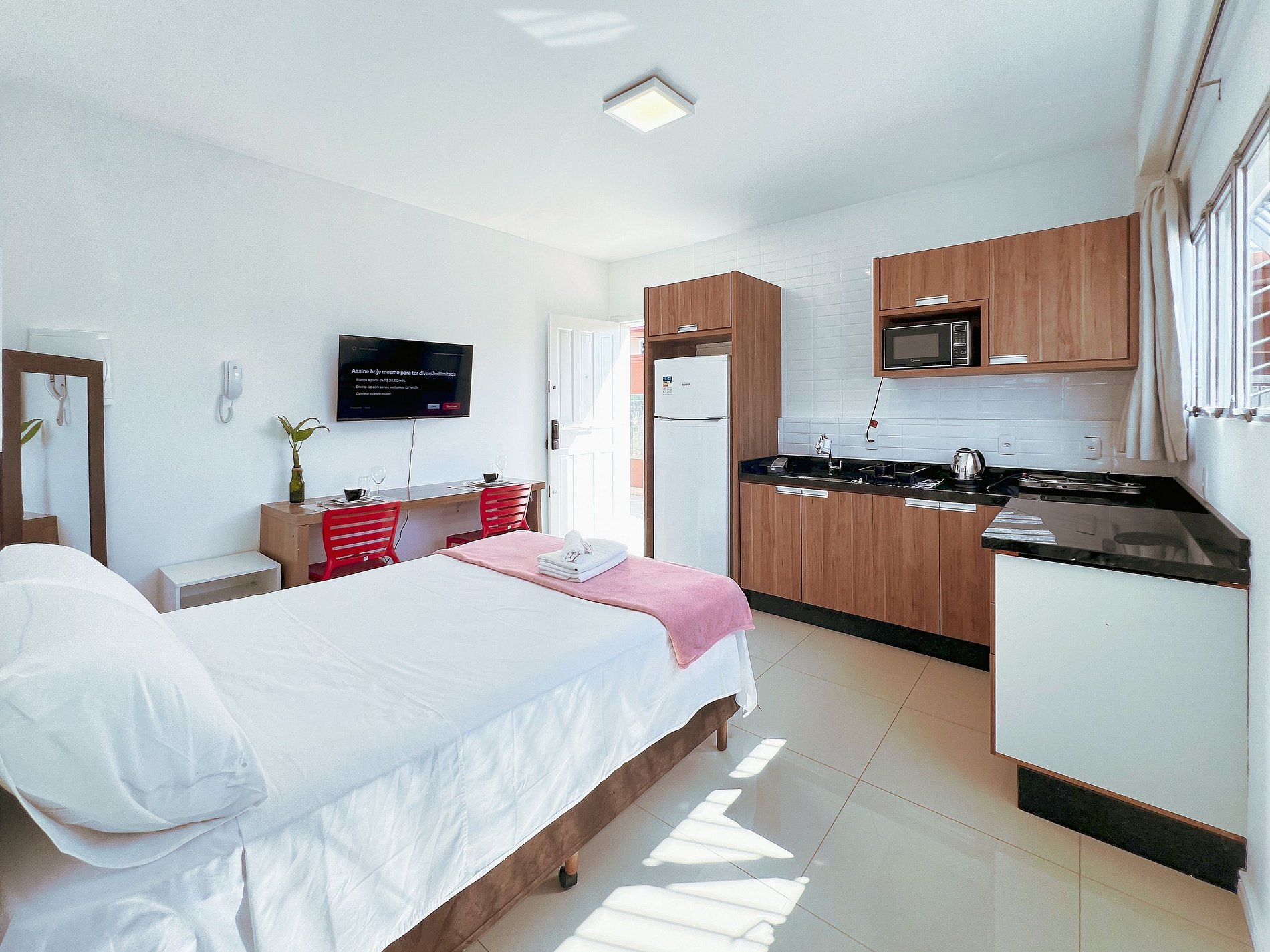 Nosso studio foi pensado para oferecer conforto, praticidade e uma estadia sem preocupações. Estamos disponíveis para garantir uma experiência incrível para você.