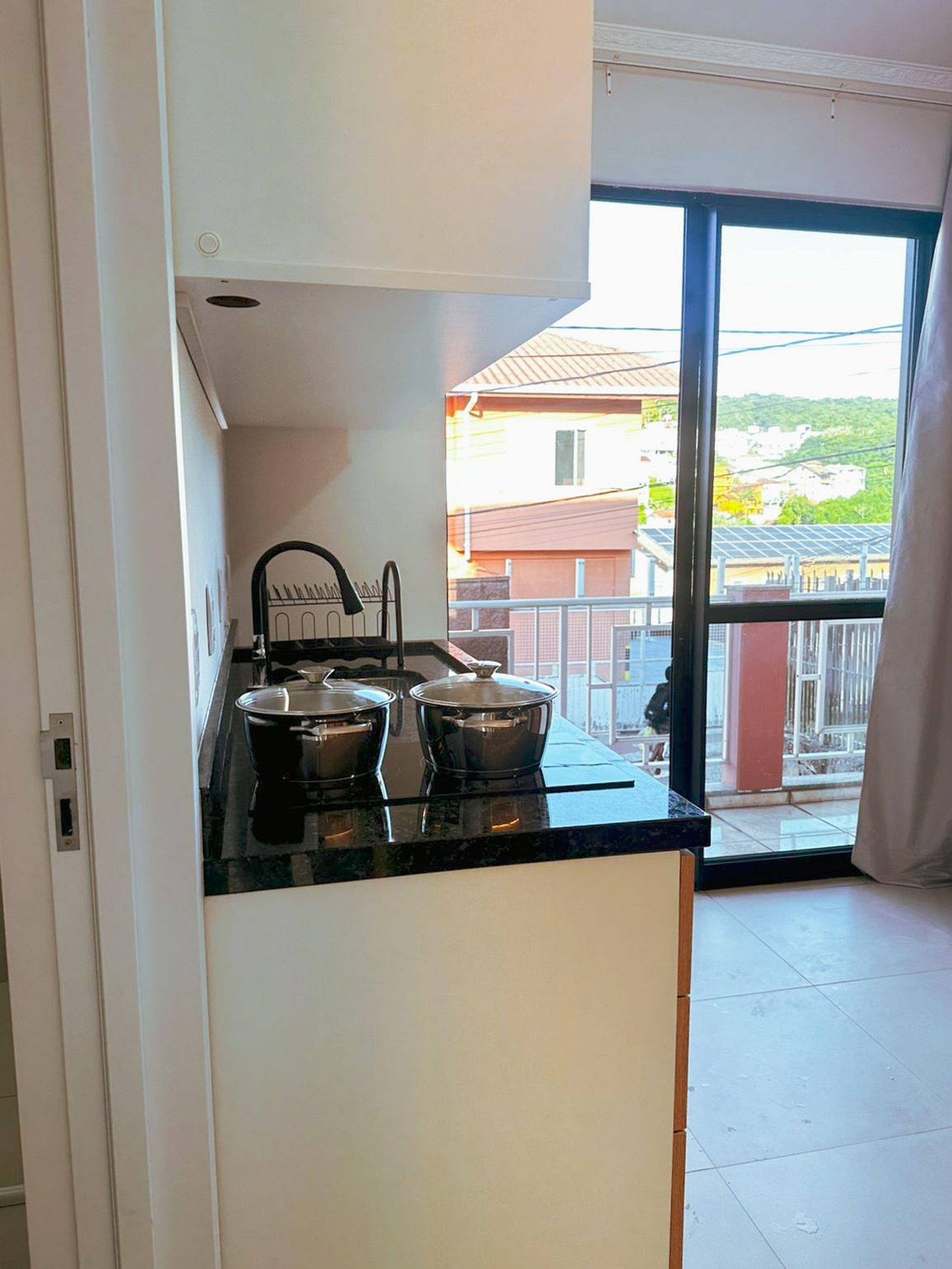 O acesso ao apartamento é feito por self check-in, oferecendo mais autonomia e flexibilidade no momento da chegada.