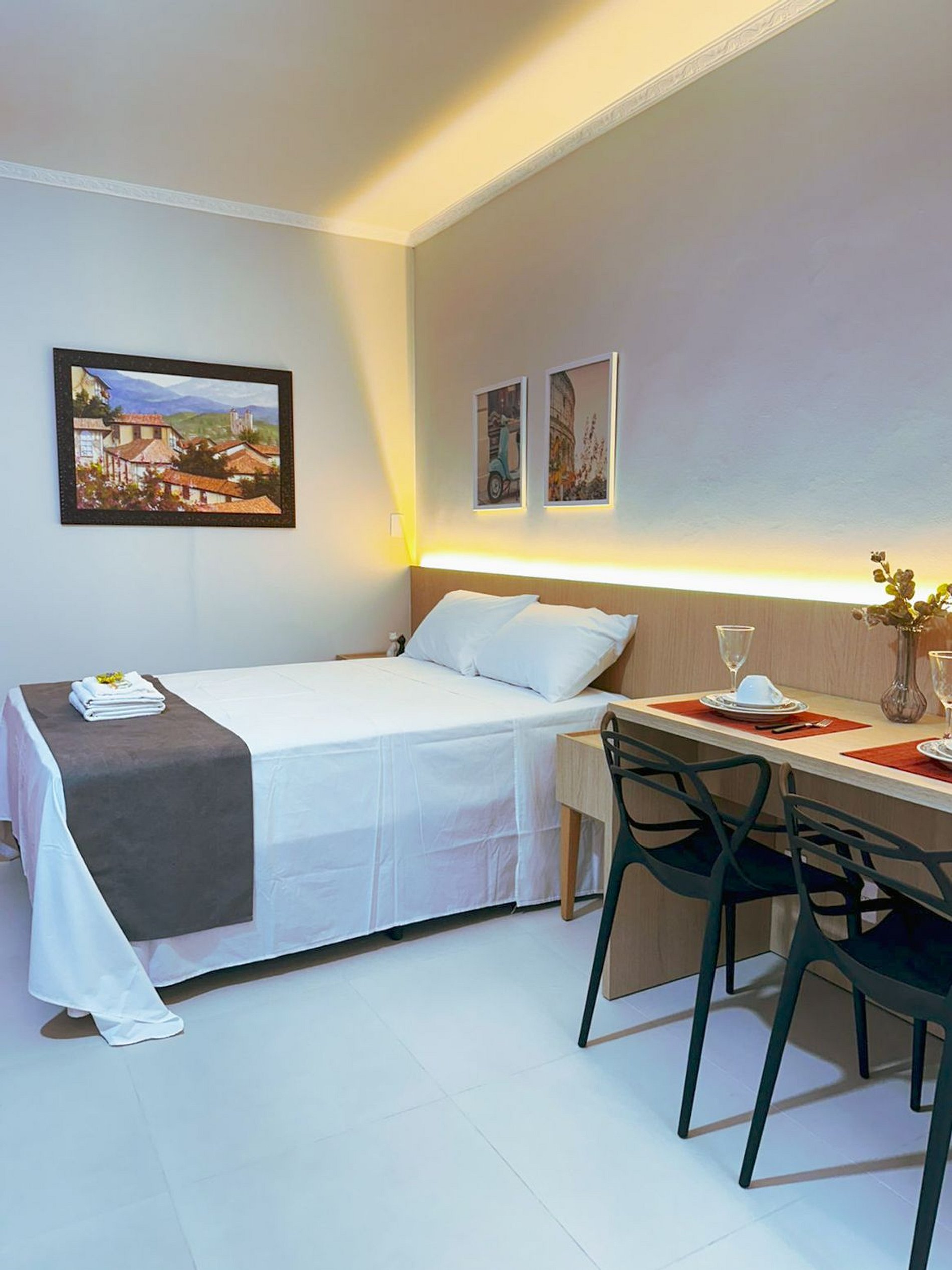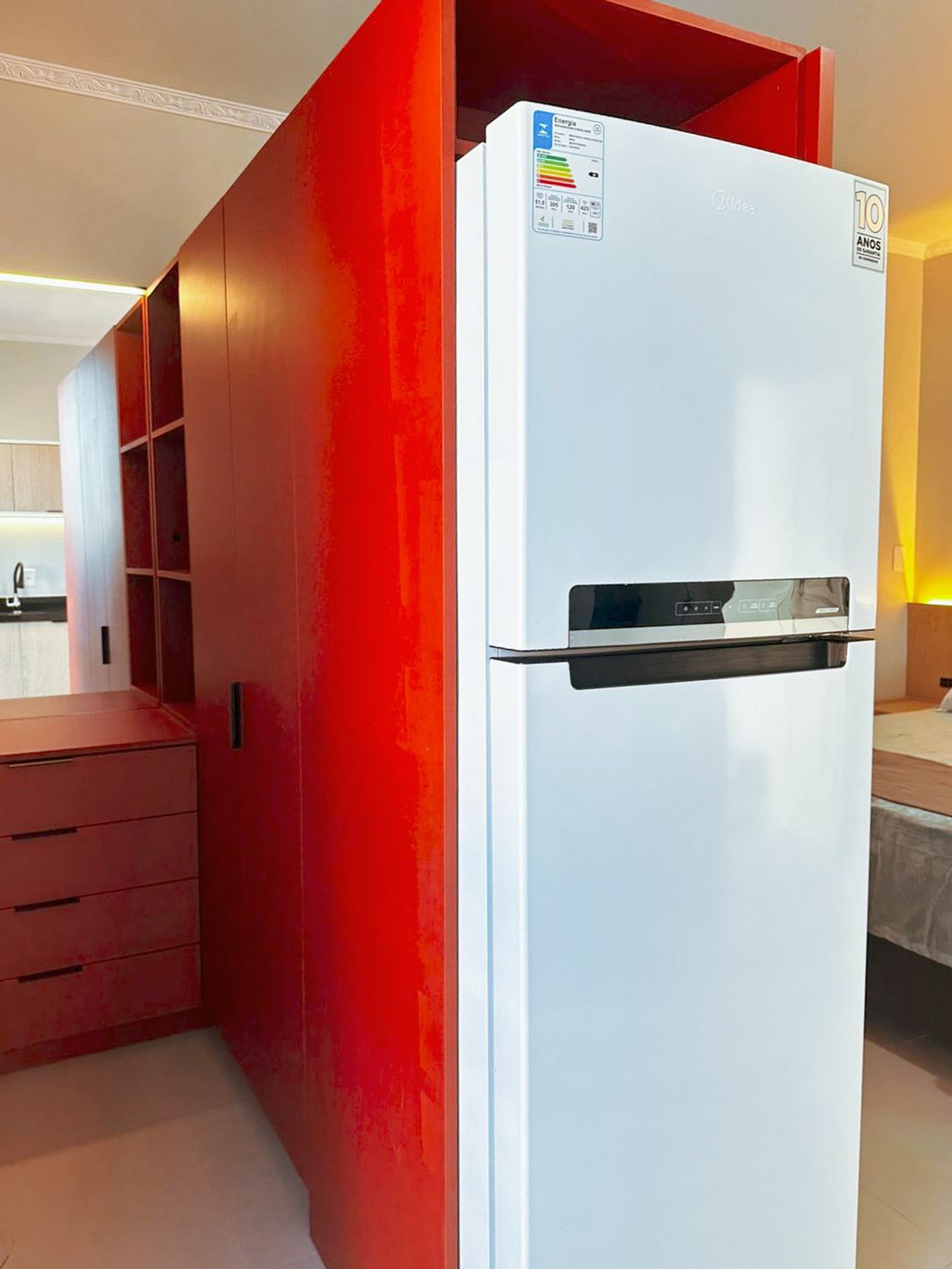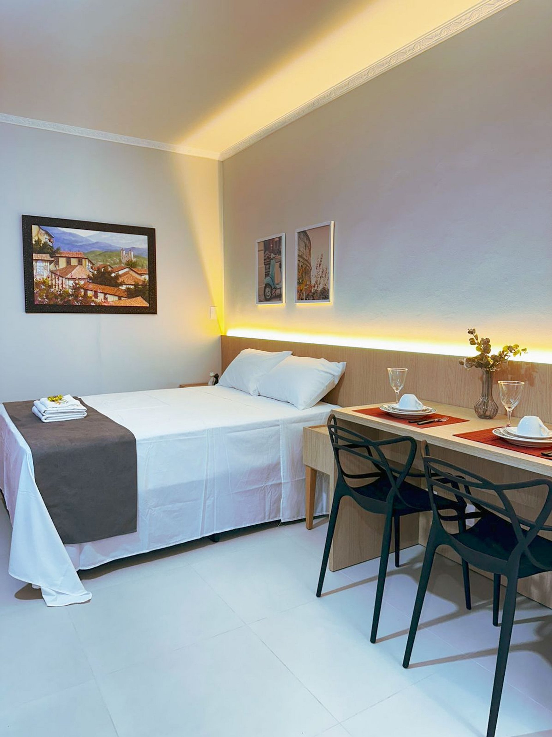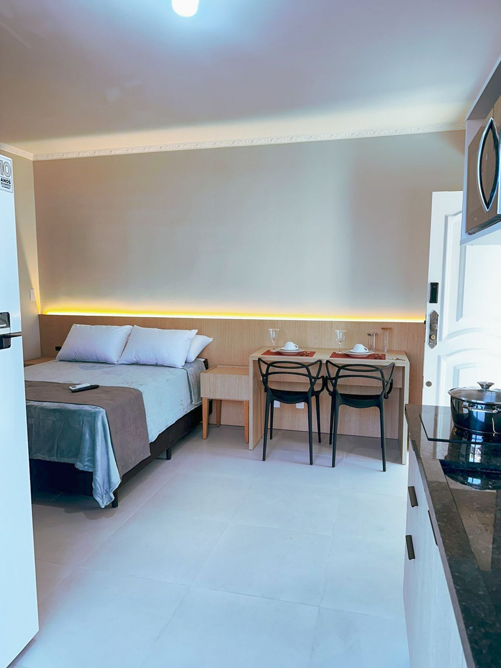 O espaço conta com móveis planejados, excelente aproveitamento de área e um closet que traz mais organização e conforto durante a estadia. Bem iluminado e arejado, o apartamento proporciona uma atmosfera leve e agradável.