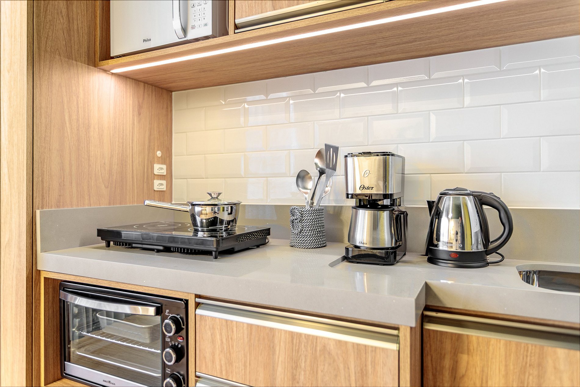 A cozinha completa, com eletrodomésticos novos e fogão de indução, oferece tudo o que você precisa para preparar suas refeições. O Wi-Fi de 200 mega, com duas redes independentes, garante uma conexão estável e rápida, perfeita para trabalho remoto ou streaming sem interrupções. A TV Smart de 43” e o ar-condicionado de 12.000 BTUs completam o ambiente, proporcionando conforto em qualquer clima.