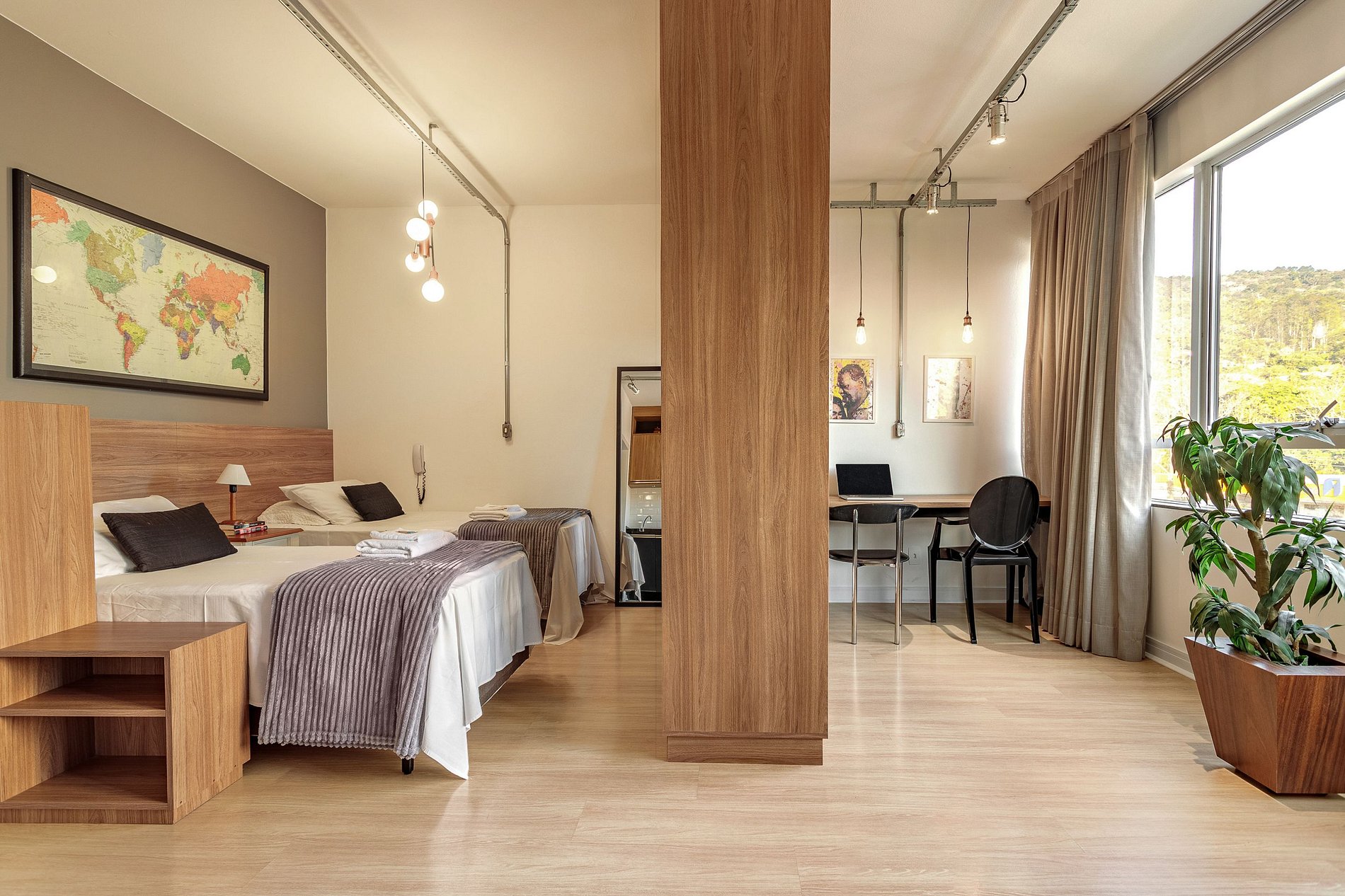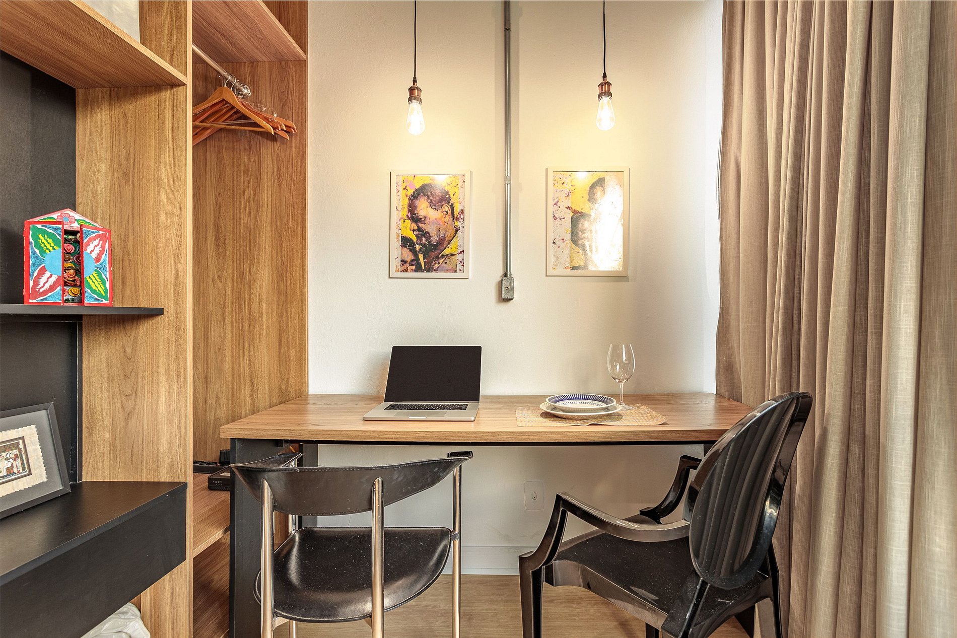 Nosso studio moderno de 30m², em estilo industrial, foi projetado para oferecer praticidade e conforto a quem busca um lugar aconchegante para trabalhar, estudar ou simplesmente relaxar. Com decoração contemporânea e um ambiente tranquilo, o espaço se destaca por sua funcionalidade, ideal tanto para estadias curtas quanto prolongadas.
