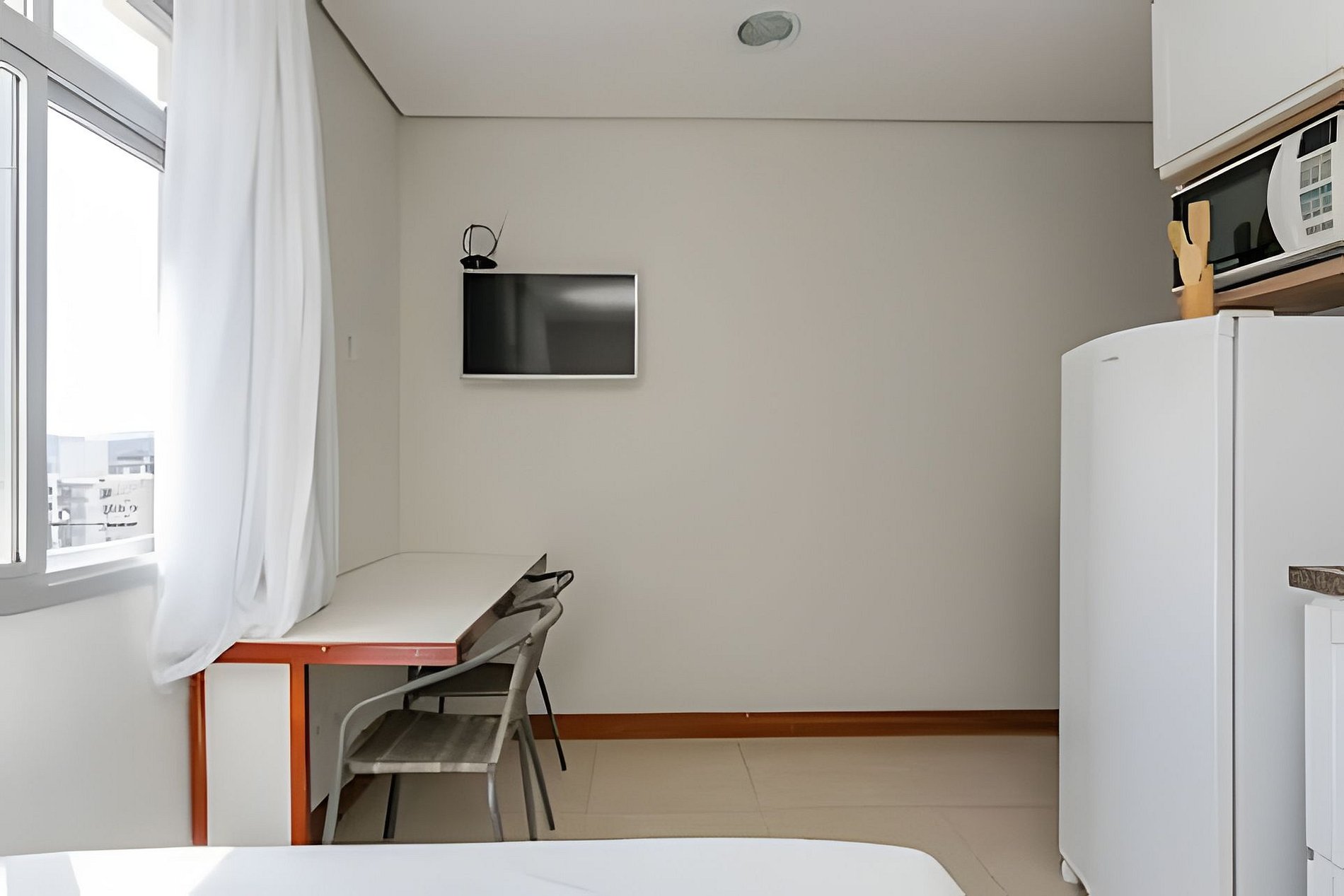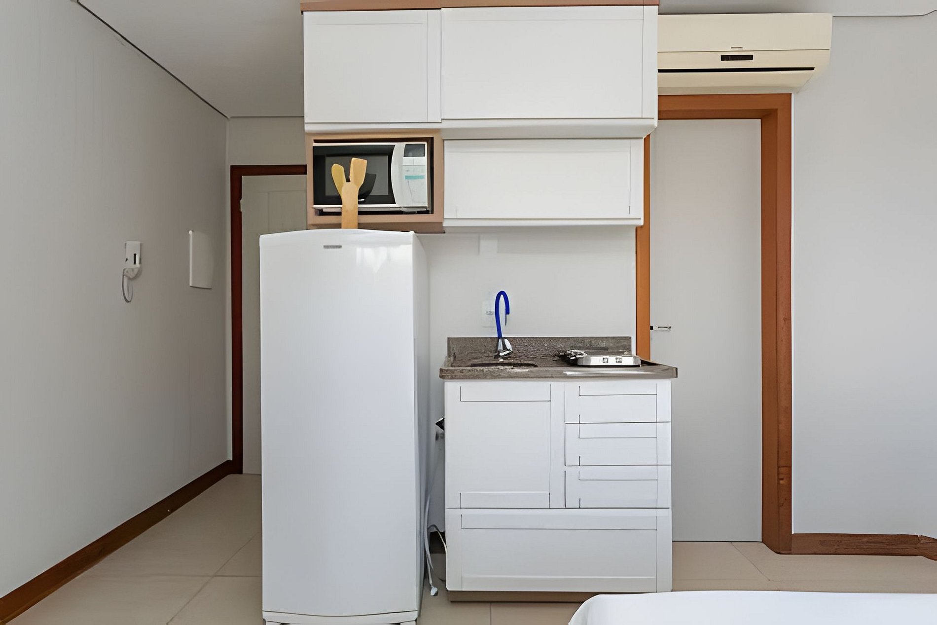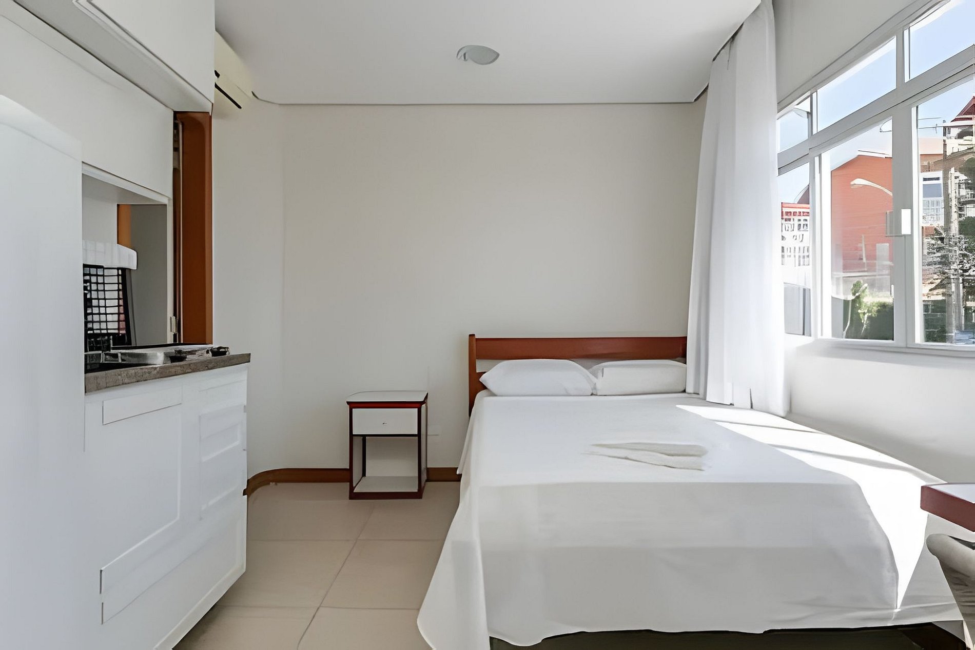 Para o conforto de nossos hóspedes, o imóvel possui: - Ambientes integrados com: - 1 cama de casal, mesa para refeições e trabalho com 2 cadeiras, TV e ar-condicionado; - 1 Closet; - Cozinha compacta conjugada ao ambiente do quarto, com geladeira, fogão, micro-ondas, sanduicheira, panelas, louças e utensílios; - 1 Banheiro Social com água quente e secador de cabelo; - Ferro de passar roupa; - Tanque para lavar roupas dentro do banheiro; - Roupas de cama e banho de qualidade hoteleira (roupas de cama e toalhas extras são cobrados a parte); - Wi-fi de 12mb disponível; - 1 vaga de garagem rotativa (não tem lugar marcado, sujeito à disponibilidade). * A limpeza inclusa no valor é realizada somente no check-out. Se o hóspede desejar uma limpeza extra durante a estadia, será cobrada uma nova taxa de limpeza. * São disponibilizadas uma toalha de banho por hóspede e uma toalha de rosto por banheiro, além de lençóis para a quantidade de hóspedes indicada. Trocas de enxoval podem ser solicitadas pelo valor de meia taxa de limpeza. Venha, relaxe, divirta-se e não se preocupe com mais nada :)