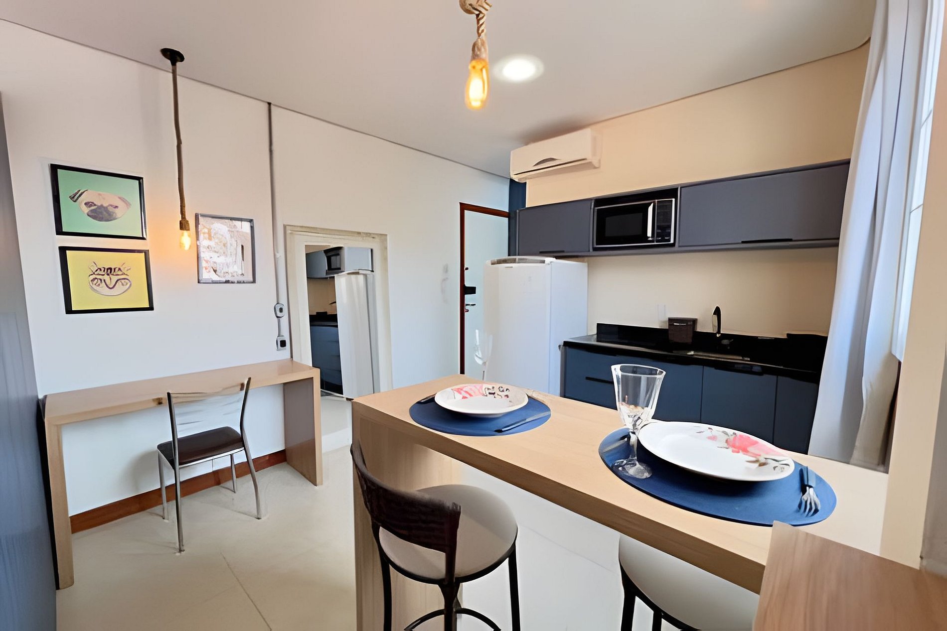 - Se sinta em casa com uma cozinha compacta com tudo o que você precisa.