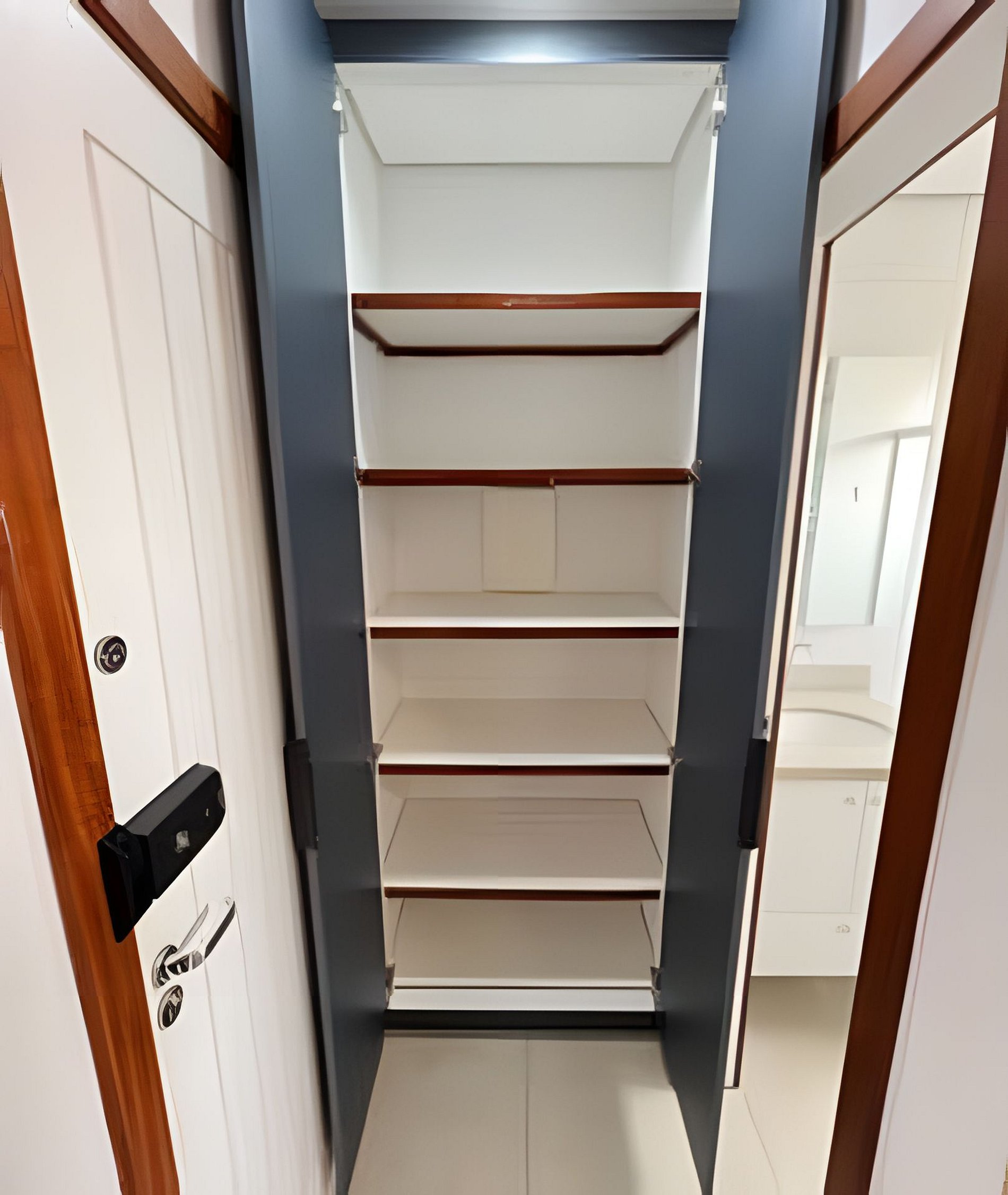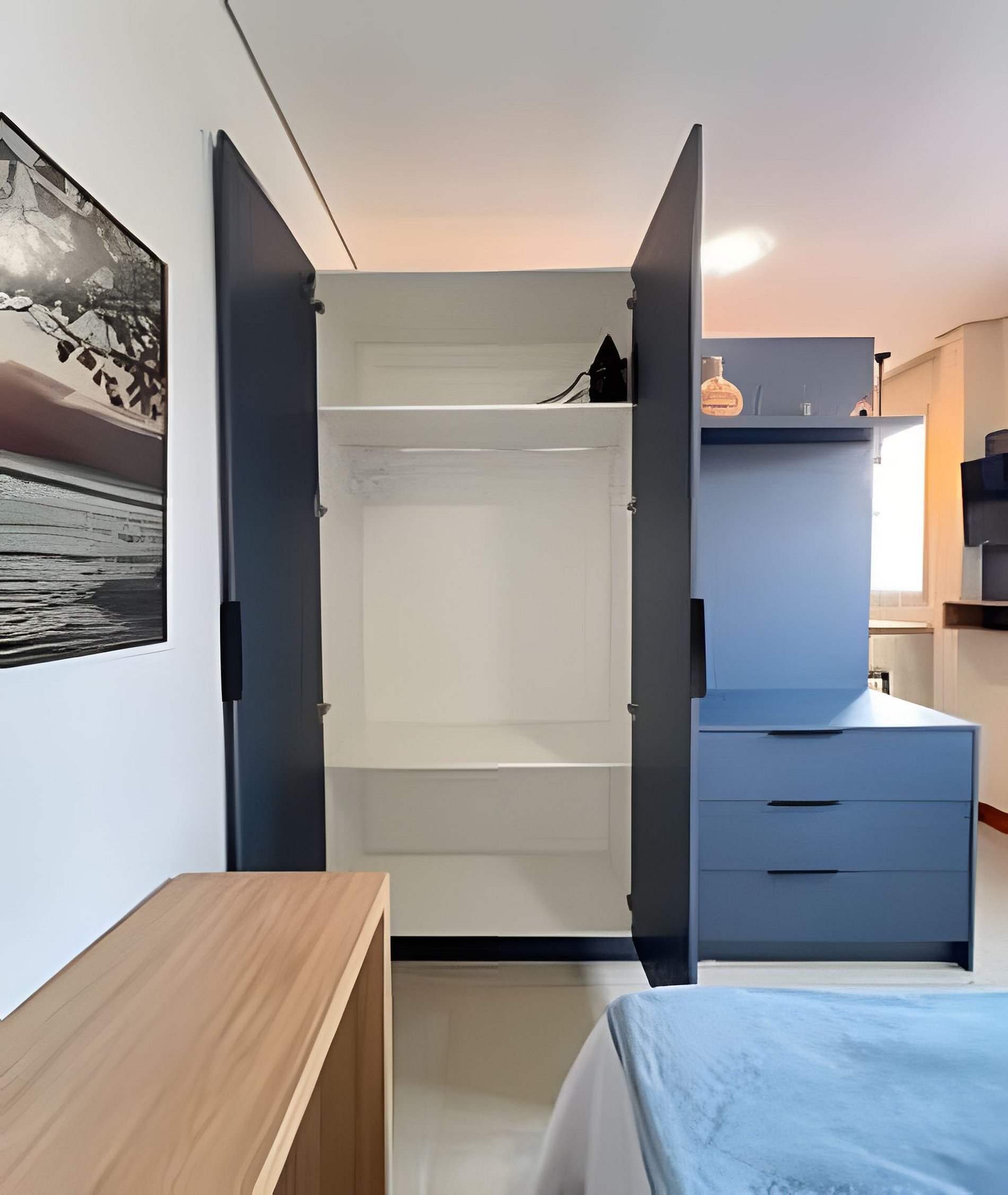 - Ótimo espaço de guarda roupas com suportes para malas.